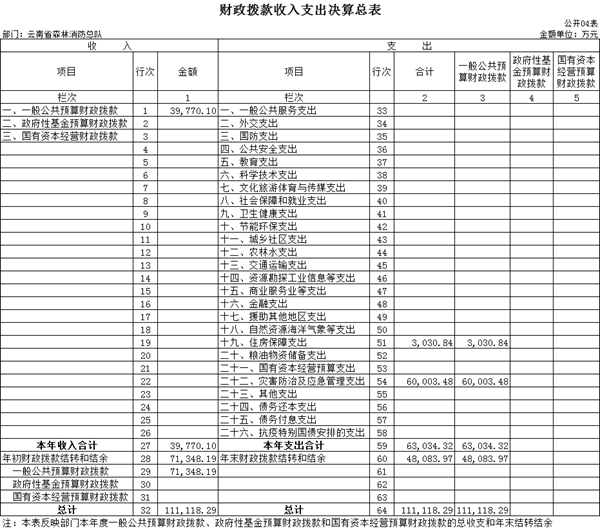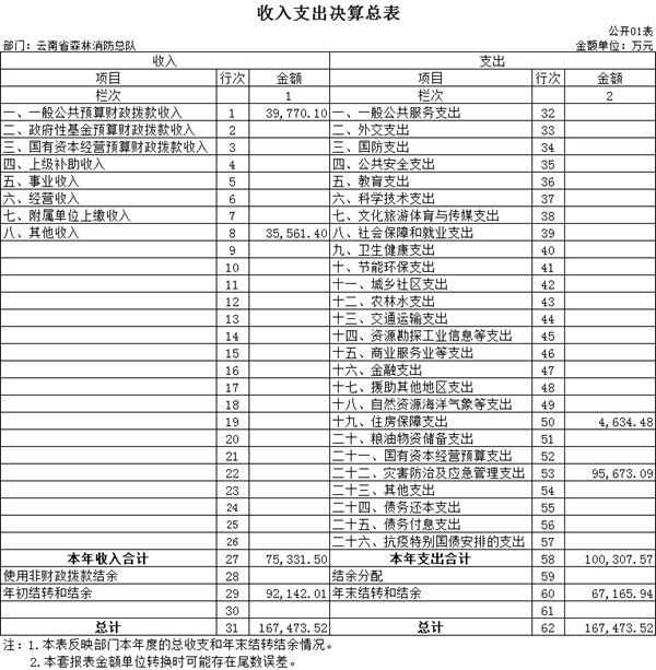 云南省森林消防总队部门决算包括总队本级决算和所属单位决算。