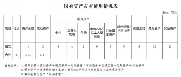 截至2021年12月31日,云南省应急救灾保障中心资产总额5.41万元,其中,流动资产5.41万元,固定资产0万元,对外投资及有价证券0万元,在建工程0万元,无形资产0万元,其他资产0万元(具体内容详见附表)。与上年相比,本年资产总额增加5.41万元,其中固定资产增加0万元。处置房屋建筑物0平方米,账面原值0万元;处置车辆0辆,账面原值0万元;报废报损资产0项,账面原值0万元,实现资产处置收入0万元;出租房屋0平方米,账面原值0万元,实现资产使用收入0万元。