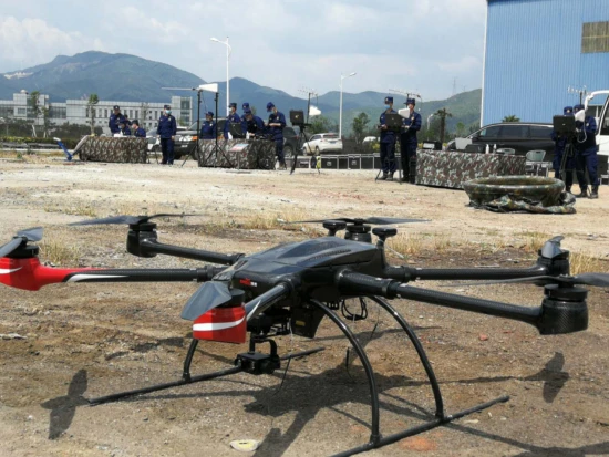中国消防救援学院共携带17台六旋翼超视距无人机、600枚灭火弹到火灾现场进行实战测试,每台无人机最大载重15公斤,可一次性携带3袋灭火剂水袋,也可一次性携带12枚干粉灭火弹,还可缓降投放救援物资。实战测试选择了禄丰火场西线余火点的局部可控范围,无人侦察机发现火点后,灭火无人机迅速展开,挂载不同灭火装置进行编队飞行,主机镜头在火点上方完成快速拼图,并将图像实时传送至地面站,无人机灭火指挥员根据火场态势,命令无人机操作员抛投水袋及灭火弹进行灭火。同时,地面站指挥台通过卫星通信系统将火灾现场图像传送到应急部指挥中心。