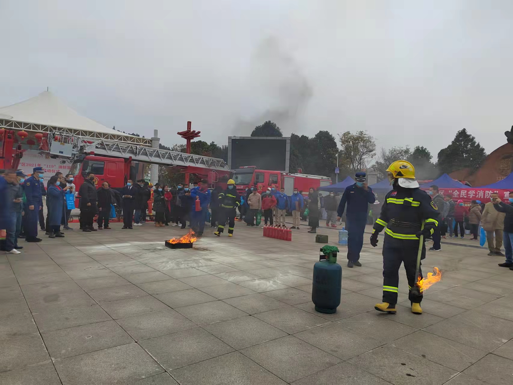 启动仪式上,区消防救援大队大队长宣读《表彰2020年度“消防工作先进单位”“消防工作先进个人”“消防安全管理先进单位”的决定》《表彰2021年全区中小学生消防绘画作文优秀作品的决定》,并进行了颁奖仪式。区政府常务副区长宣布晋宁区2021年“119”消防宣传月活动正式拉开序幕。