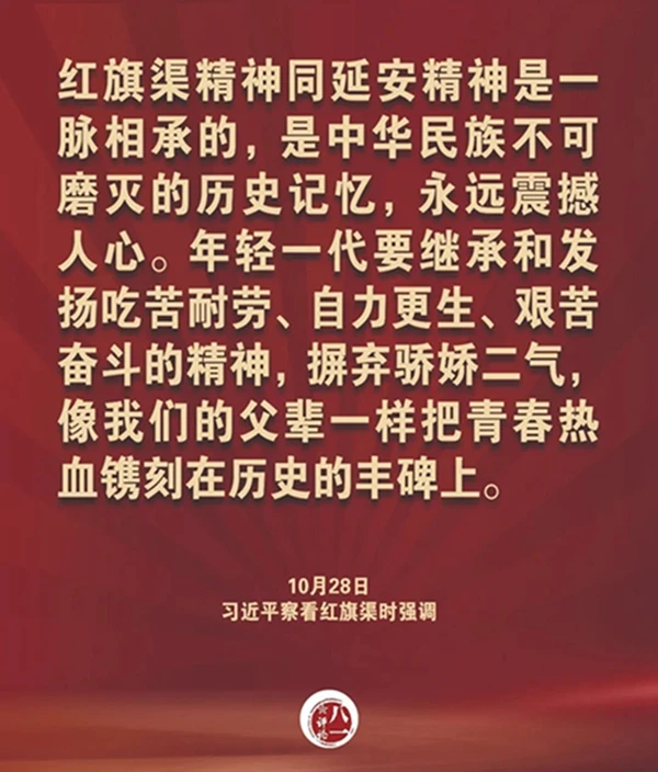 考察期间,习近平主席多次提到延安精神和红旗渠精神,强调“是中华民族不可磨灭的历史记忆,永远震撼人心。”