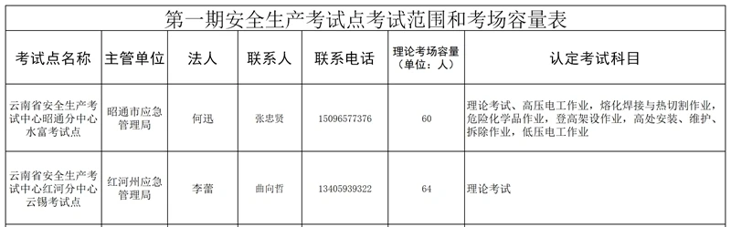 根据《云南省应急管理厅关于进一步加强安全生产考试机构管理工作的通知》(云应急办〔2021〕8号)和有关规定,经省应急厅组织专家现场核查,对云南省安全生产考试中心昭通分中心水富考试点、云南省安全生产考试中心红河分中心云锡考试点予以公示,接受社会监督。公示期为2022年1月20日至2022年1月27日(法定节假日除外)。公示期间,如有异议,可通过电话、传真、电子邮件、信函等形式向省应急管理厅反映(信函以邮戳为准)。以单位名义反映情况的材料须加盖单位公章,以个人名义反映情况的材料应署实名并提供有效联系方式。
