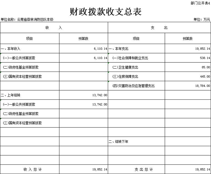 四、关于云南省森林消防总队本级2022年财政拨款收支总表的说明