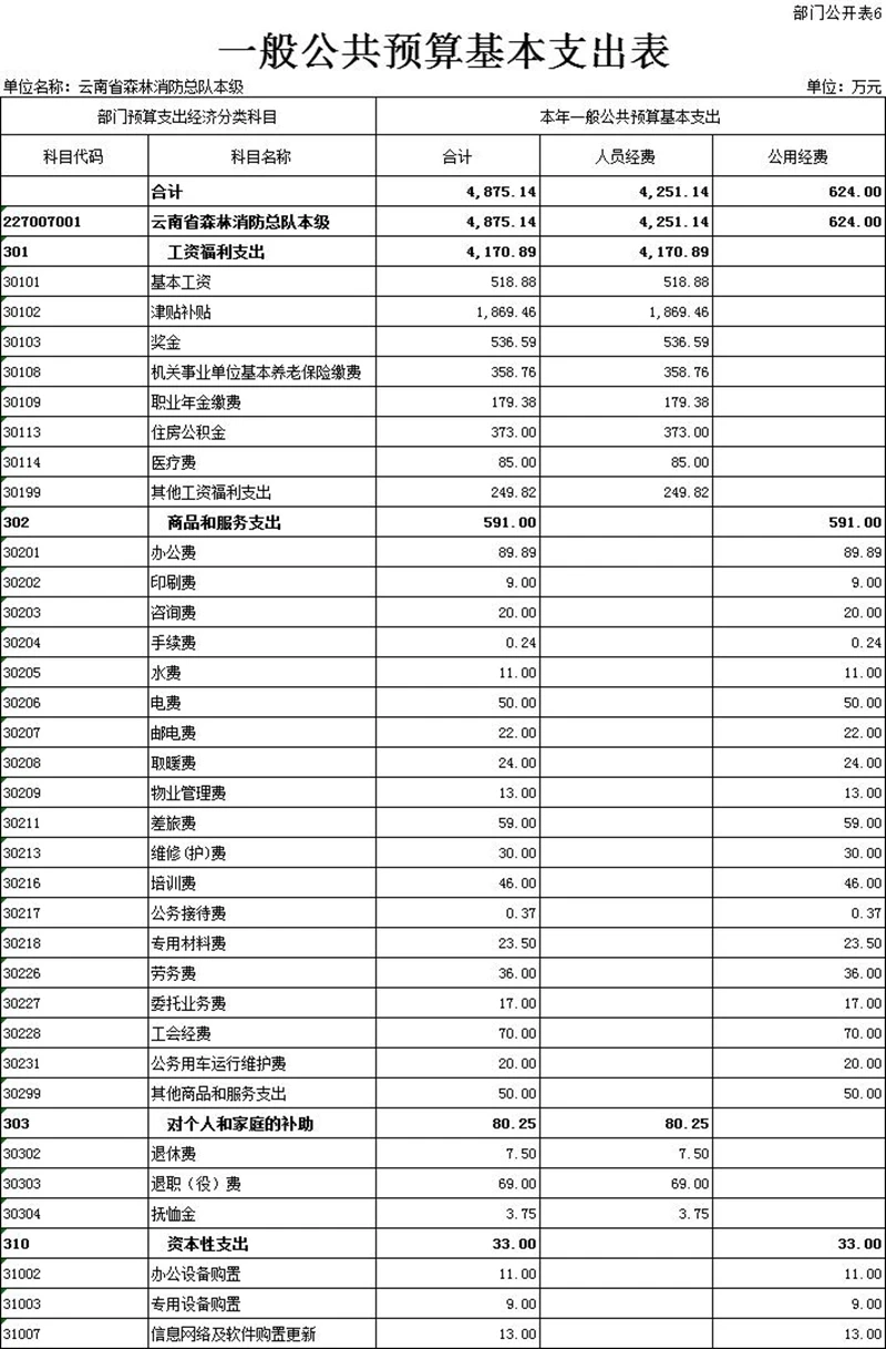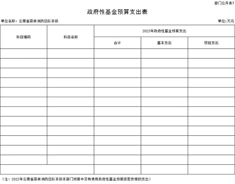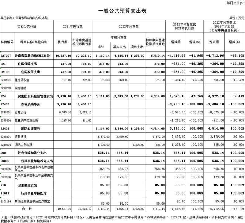 五、关于云南省森林消防总队本级2022年一般公共预算支出表的说明