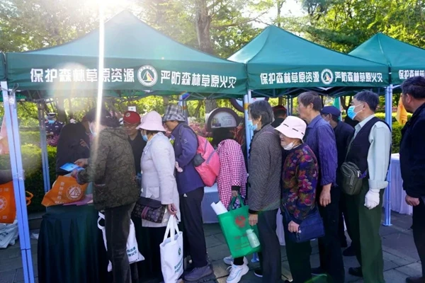 活动中,现场大屏滚动播放云南省森林草原防灭火宣传片《别让星星火,焚毁片片林》,并通过防灭火装备静态展示、宣传板展示、发放宣传资料、面对面讲解野外用火管理及防灭火安全知识等方式开展。活动现场向市民发放森林防火入山通知书、森林防火知识学生作业本、森林火灾典型案例、森林草原防灭火应知应会手册、防火宣传折页等共计2000余份,还发放了环保袋、围裙、纸巾、帽子等多种宣传资料,广大市民热情高涨,积极参与各类活动,更近距离、更全方面地学习了解森林草原防火知识,形成全社会自觉支持、配合森林草原防火工作的浓厚氛围。