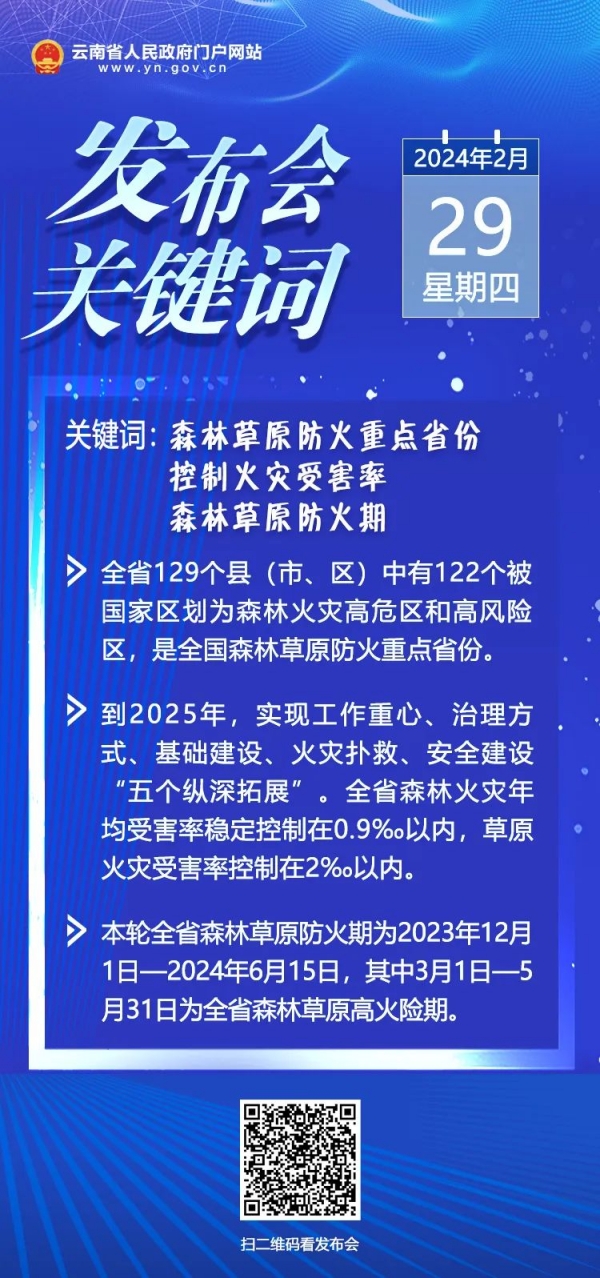 2月29日,2024年云南省森林草原防灭火工作新闻发布会在海埂会堂召开,有关负责人介绍相关情况,并回答记者提问。