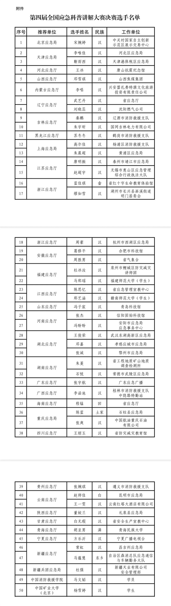 附件:第四届全国应急科普讲解大赛决赛选手名单