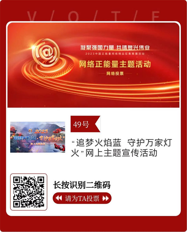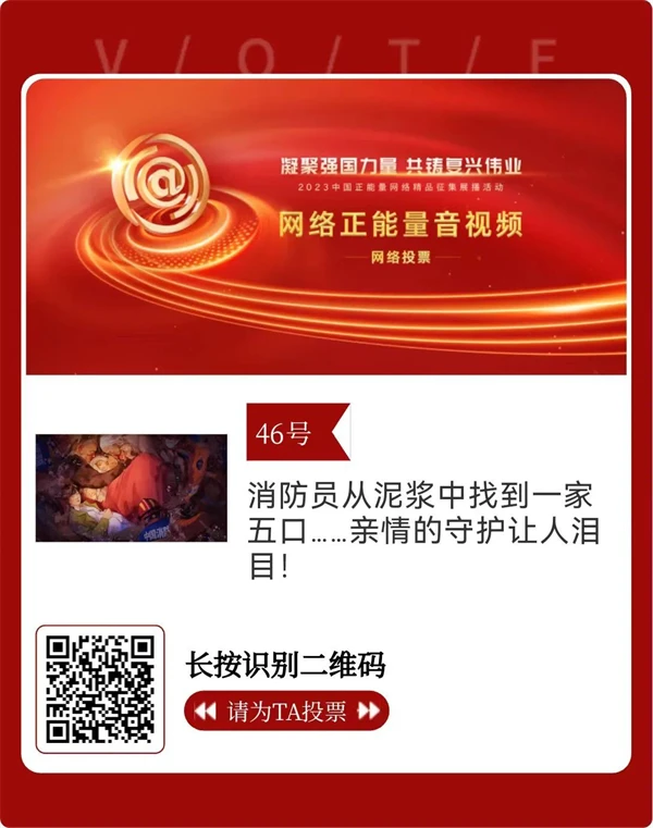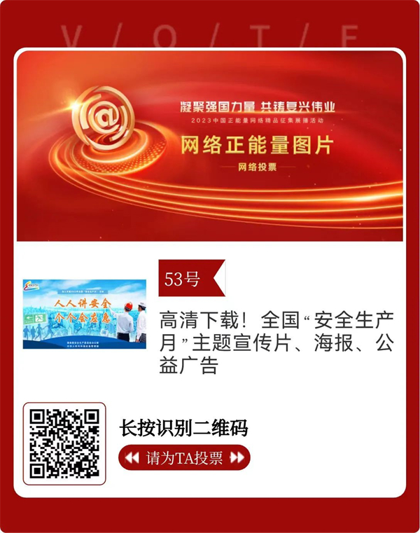 凝聚强国力量,共铸复兴伟业。由中央网信办主办的2023中国正能量网络精品征集展播活动进入网络展播投票环节,请大家积极参与,为应急管理系统入围的网络正能量精品投上宝贵一票。你的一票至关重要!