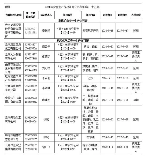附件:2024年安全生产行政许可决定公示名单(第二十五期)