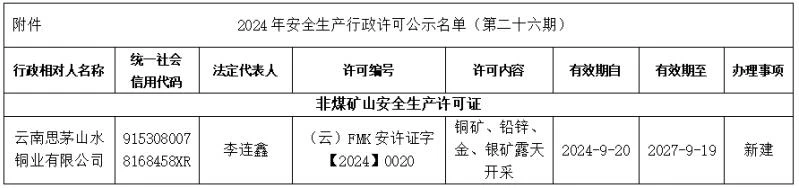 附件:2024年安全生产行政许可决定公示名单(第二十六期)