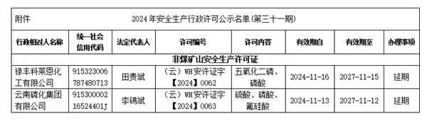 附件:2024年安全生产行政许可决定公示名单(第三十一期)
