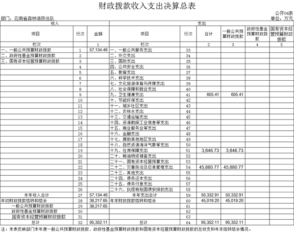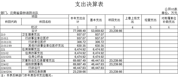 云南省森林消防总队部门决算包括总队本级决算和所属5个支队决算。
