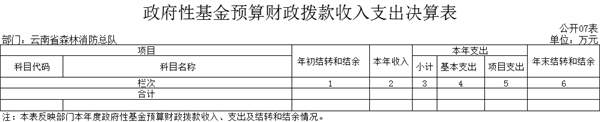 云南省森林消防总队无政府性基金收入和支出,故本表无数据。
