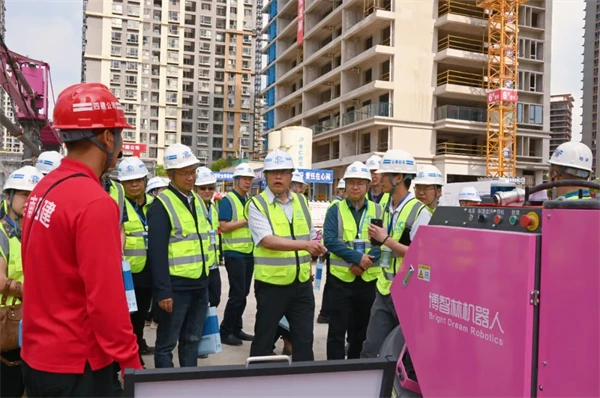 会后,与会人员进行现场安全标准化观摩交流,详细了解智能建造机器人、实体样板运用以及绿色施工等情况。