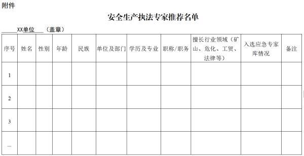 (一)本次专家人选推荐无名额限制,请各有关单位积极推荐符合条件人员。请各州(市)应急管理局从本地安全生产专家库或辖区相关单位遴选人员统一推荐,其他单位从本单位、系统内部推荐,请于2025年5月30日前反馈安全生产执法专家推荐名单(附件)。