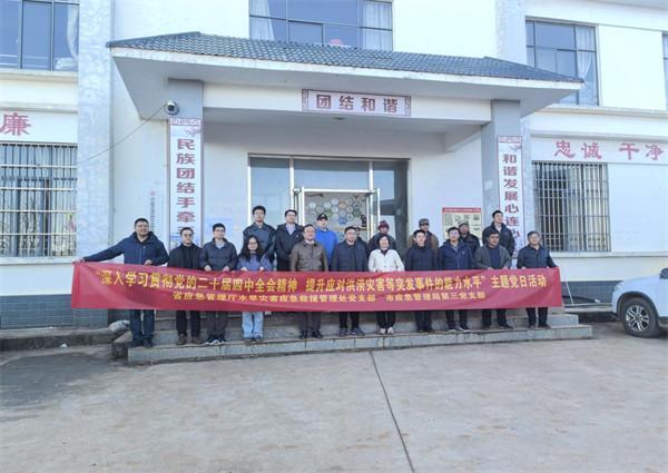 为深入贯彻落实新时代党的建设总要求,强化党建与业务深度融合,进一步凝聚省、市应急管理部门协同作战合力,11月27日,省应急管理厅水旱灾害应急救援管理处党支部和昆明市应急管理局第三党支部到寻甸县功山镇朵马嘎村开展“深入学习贯彻党的二十届四中全会精神 提升应对洪涝灾害等突发事件的能力水平”主题党日活动。