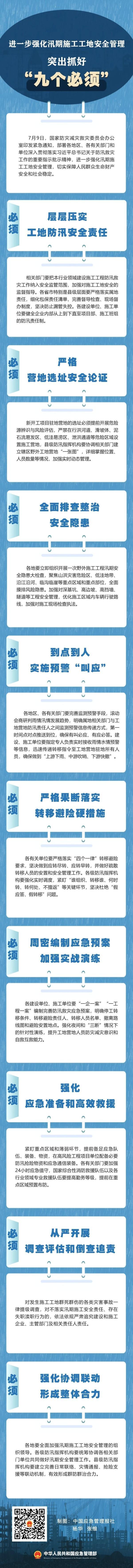 7月9日,国家防灾减灾救灾委员会办公室印发紧急通知,部署各地区、各有关部门和单位深入贯彻落实习近平总书记关于防汛救灾工作的重要指示批示精神,进一步强化汛期施工工地安全管理,切实保障人民群众生命财产安全和社会稳定。应急管理部相关司局负责人就相关问题进行了解读。