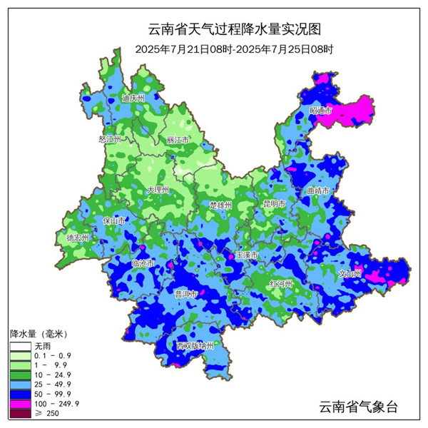 7月24日,台风“韦帕”带来的强降雨过程已经结束,过程平均雨量37.0毫米,最大小时雨量66.8毫米,出现在临沧市临翔区邦东乡曼岗站。