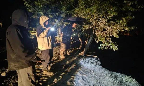 村组干部、信息报送员夜间巡查险情。云南省委网络安全和信息化委员会办公室供图