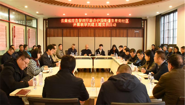 11月4日,省应急管理厅组织部分党支部党员前往荣获“云岭先锋红旗党支部”称号的昆明市五华区护国街道景星街社区党委,开展“学习红旗支部经验 提升应急党建水平”联学共建主题党日活动。厅党委委员、政治部主任冯荣,厅党委委员、副厅长王旭斌带队参加。