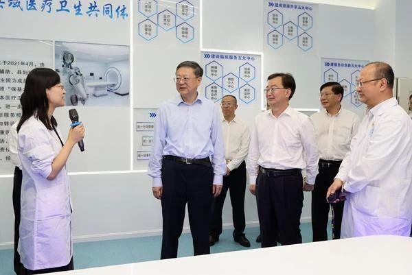 上海市委书记陈吉宁率队考察,省委书记王宁陪同考察。
