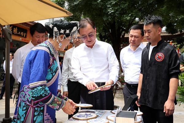 王宁在罗婺彝绣街参观彝绣展示。