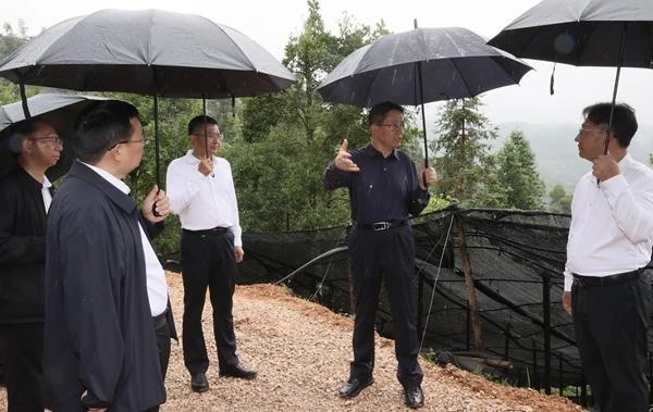 8月7日,王予波在西畴县香坪山林下中药材基地三七种植点调研。