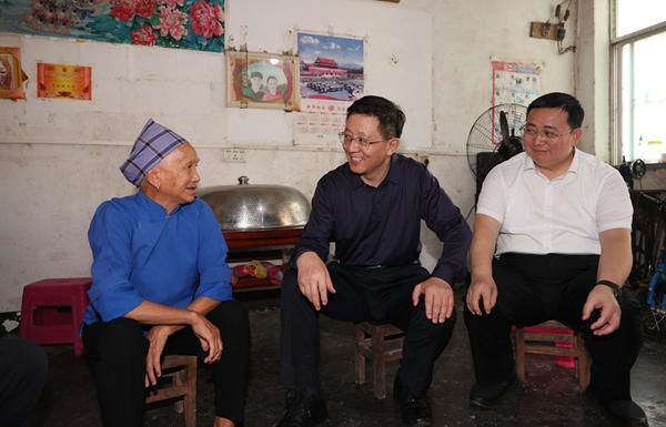 王予波随机调研富宁县剥隘镇百标村,到村民陆美花家中走访。