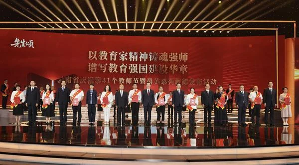 随后,庆祝活动在师生情景讲述《先生颂》中拉开序幕,由师生自编自演的节目温馨感人。情景分享《一天·一年·一辈子》、《薪火成炬》等深情歌颂广大教师爱党爱国、坚守讲台、默默耕耘的精神风貌,歌舞秀《背着书包来留学》、特殊教育情景剧《生命之光》等生动展现我省教育事业改革发展新突破新成就,尾声环节全体演职人员合唱《每当我走过老师窗前》,热烈的掌声再次响起,向广大教师致以深切的谢意。