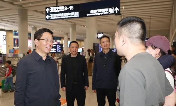 昆明长水国际机场人流如织,王予波与旅客一同从2号出发通道进入,通过值机、安检、行李提取等环节,全流程体验进出港服务。在航站楼商铺,他向经营户了解鲜花等商品销售情况。在机场休息区,他与来自重庆、浙江、广东等地的旅客交流,听到大家对云南之旅期待已久,王予波祝他们开心旅游,领略云南之美。他到TOC大厅了解航站楼运行管理情况,看望值班人员和公安民警、武警官兵。他指出,飞机场、火车站都是云南重要门户和形象代表,要统筹抓好安全保障、运力组织、服务优化,不断提高旅客满意度。