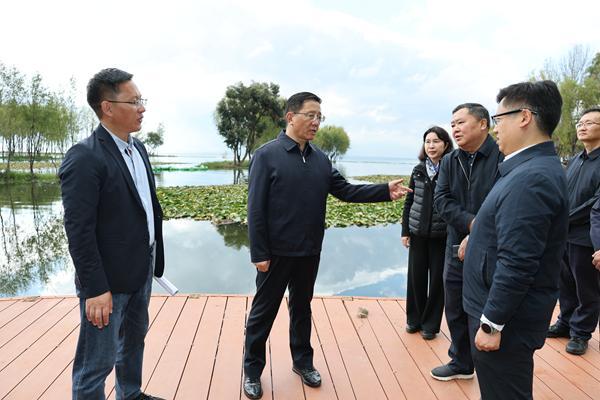 王予波在玉白菜湿地公园调研洱海保护治理工作。