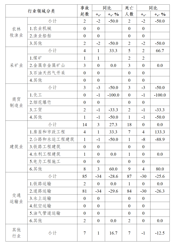 (一)安全生产形势总体稳定。2月份,全省共发生生产安全事故49起、死亡52人,同比分别减少8起、5人,下降14%、8.8%。生产安全事故起数、死亡人数同比持续下降,已连续63个月未发生重大及以上生产安全事故。