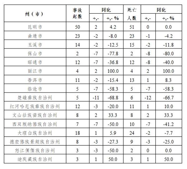 1月至3月,全省发生各类生产安全事故191起、死亡203人,同比分别减少41起、41人,下降17.7%、16.8%。其中,较大事故2起、死亡6人,同比分别减少2起、11人,下降50%、64.7%;未接报重大及以上事故。