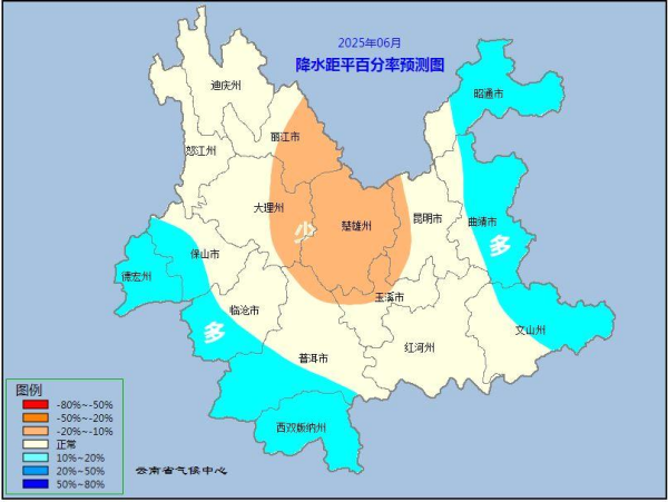 (一)气象灾害风险。6月进入主汛期,单点性、区域性极端强降水出现的风险高,极易引发洪涝、城市内涝及地质灾害,建议继续做好风险排查及防洪排涝的准备工作。主汛期短时强降水、雷暴大风、冰雹等强对流天气频繁,建议提前防范强对流天气可能对城市运行、乡村安全、交通运输等造成的不利影响。预计6月降水区域差异较大,滇中、滇西北等地降水偏少,建议密切关注局地可能发生的气象干旱,提前采取应对措施。