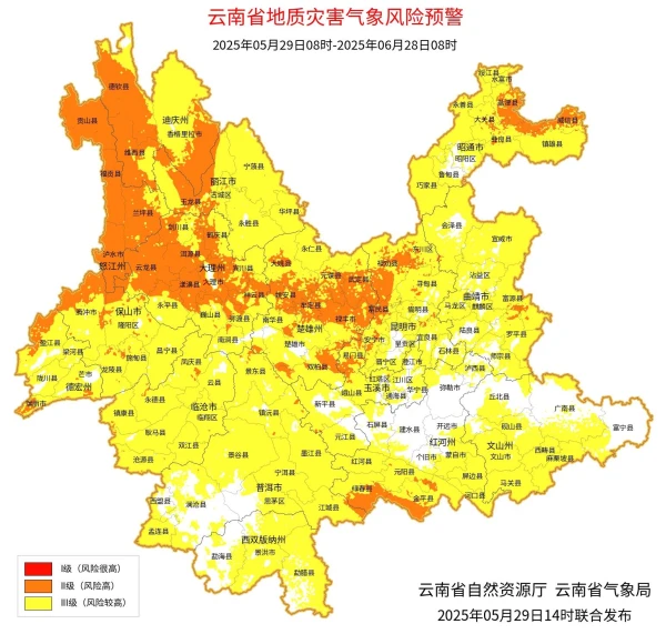 综合研判认为,进入主汛期后,单点性、区域性极端强降水出现的风险高,短时强降水、雷暴大风、冰雹等强对流天气频繁;滇东南、滇南、滇西北、滇东北等部分地区洪涝灾害风险较高;全省大部分地区地质灾害风险等级较高;森林草原防火形势总体平稳;农作物病虫害总体中等发生,林业有害生物保持高发态势。