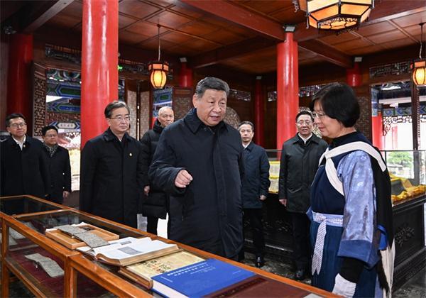 古城内的木氏土司府衙署见证了西南地区各民族交往交流交融的历史。习近平察看木府主要建筑,参观纳西族东巴文化研究成果展示。他强调,要保护利用好木府这样的重要文化地标,保护传承好中华优秀传统文化,引导各族群众自觉铸牢中华民族共同体意识,不断推进中华民族共同体建设。