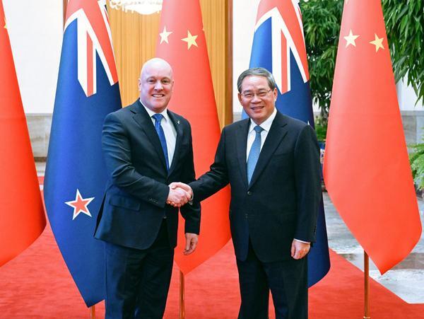 李强指出,中新经济有着高度互补性,中方愿同新方加强发展战略对接,发掘更多利益契合点,推动各领域合作提质增效,实现更高水平的互利共赢。双方要进一步扩大贸易规模,共同履行好自贸协定关税减让承诺,加快推进服务贸易负面清单谈判,持续推进贸易投资自由化便利化。要拓展新能源汽车、工业绿色低碳、数字技术应用、数字产品服务等新兴领域合作,全面、高质量实施《区域全面经济伙伴关系协定》,更好推进区域经济一体化。中方愿进口新方更多优质农食产品,将继续鼓励有实力的中国企业赴新投资,希望新方为中国企业在新经营提供公平、开放的营商环境。中方欢迎新西兰成为2025年中国国际教育年会主宾国,愿同新方深化教育、旅游、智库、地方等交流,增进两国人民相知相亲。当前,全球经贸格局正在经历深刻变革调整,中方愿同新方加强在联合国、世贸组织、亚太经合组织等框架下的沟通协作,维护以规则为基础的多边贸易体制,营造开放、包容、非歧视的国际经济合作环境,为动荡的世界注入更多稳定性和确定性。