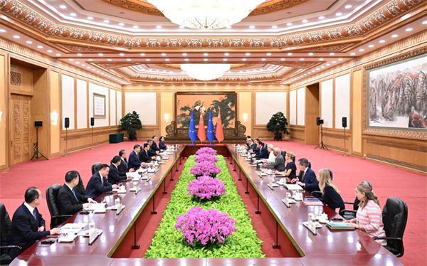 二是坚持开放合作,妥善处理分歧摩擦。历史和现实证明,相互依赖不是风险,利益交融不是威胁,提升竞争力不能靠“筑墙设垒”,“脱钩断链”只会孤立自己。“降依赖”不能减合作。中欧经贸关系的本质是优势互补、互利共赢,应该也完全能够在发展中实现动态平衡。中国高质量发展、高水平对外开放将为中欧合作提供新机遇、拓展新空间。中欧要深化绿色和数字伙伴关系,促进相互投资合作。希望欧方保持贸易和投资市场开放,克制使用限制性经贸工具,为中国企业赴欧投资兴业提供良好营商环境。