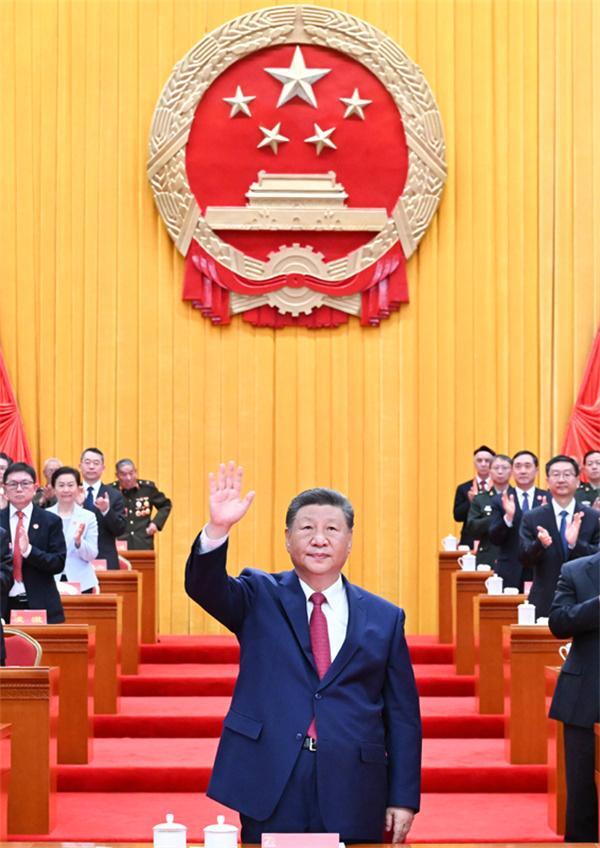上午10时30分许,在欢快的乐曲声中,习近平等领导同志走上主席台,全场响起长时间的热烈掌声。