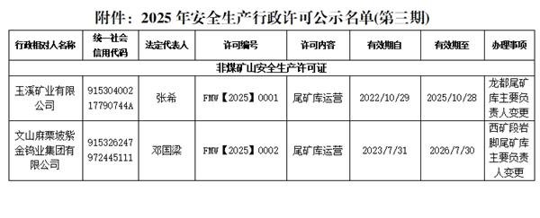 附件:2025年安全生产行政许可决定公示名单(第三期)