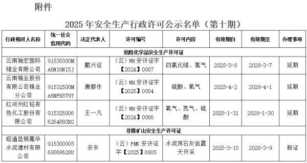 附件:2025年安全生产行政许可决定公示名单(第十期)