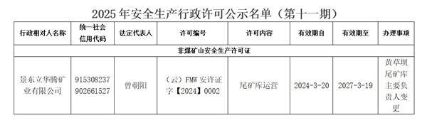 附件:2025年安全生产行政许可决定公示名单(第十一期)