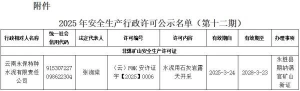 附件:2025年安全生产行政许可决定公示名单(第十二期)
