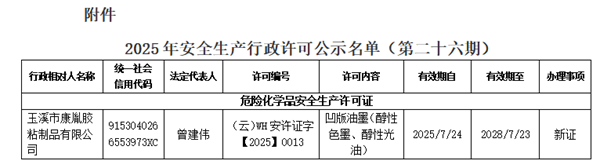 附件:2025年安全生产行政许可决定公示名单(第二十六期)