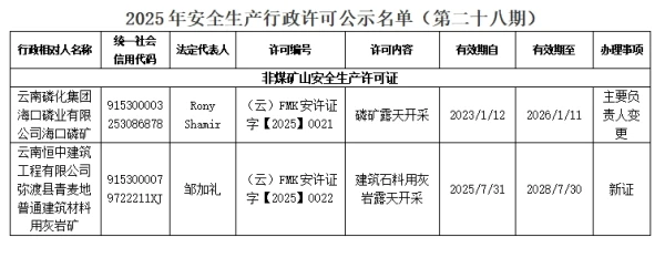 附件:2025年安全生产行政许可决定公示名单(第二十八期)