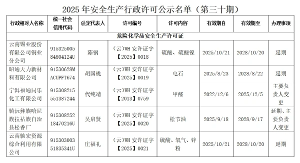 附件:2025年安全生产行政许可决定公示名单(第三十期)