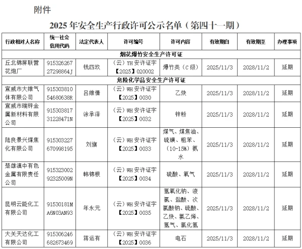 附件:2025年安全生产行政许可决定公示名单(第四十一期)