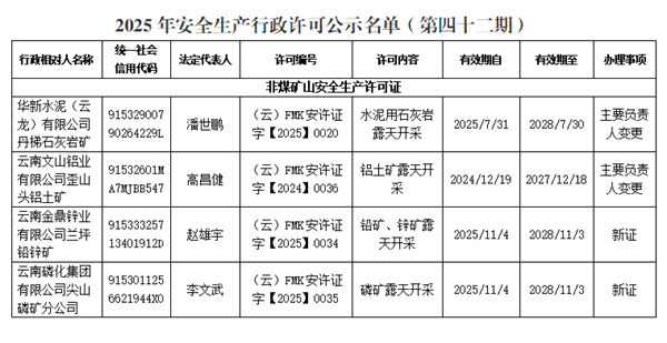 附件:2025年安全生产行政许可决定公示名单(第四十二期)
