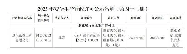附件:2025年安全生产行政许可决定公示名单(第四十三期)