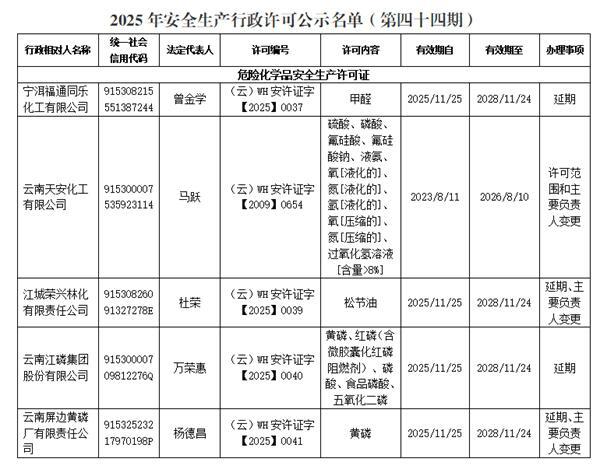 附件:2025年安全生产行政许可决定公示名单(第四十四期)